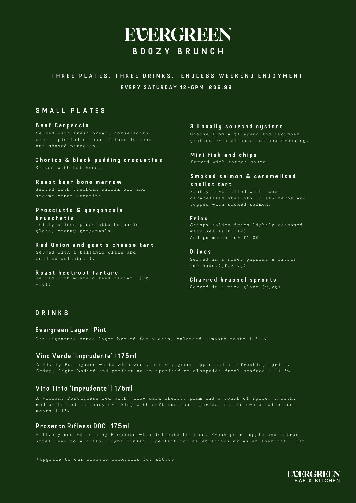 Enjoy three small plates and three glasses of wine or beer or Prosecco for just £39.99.