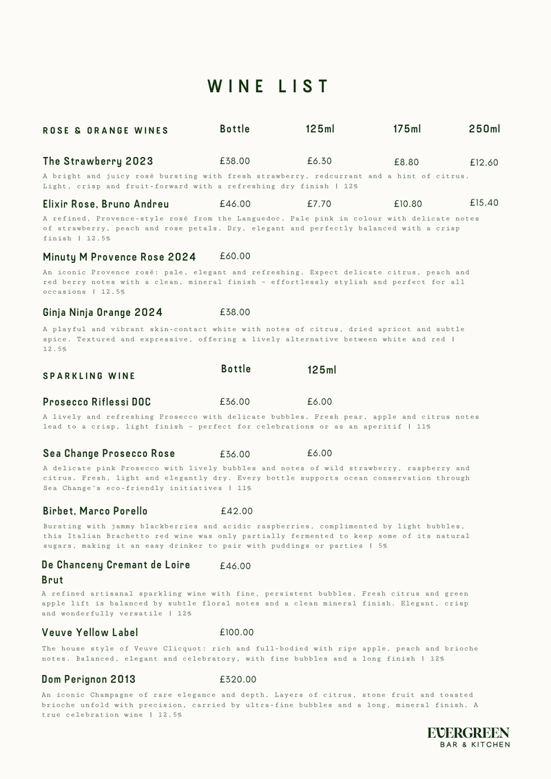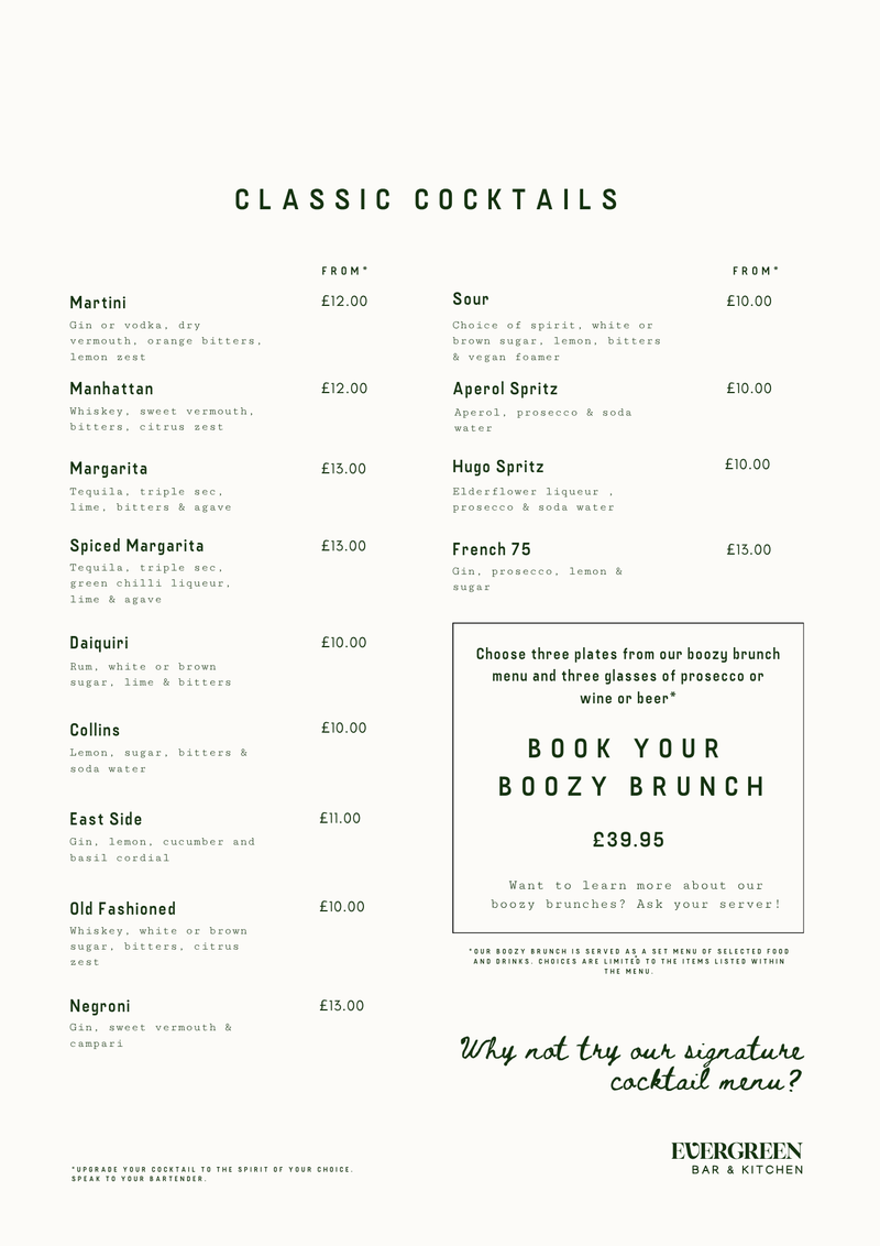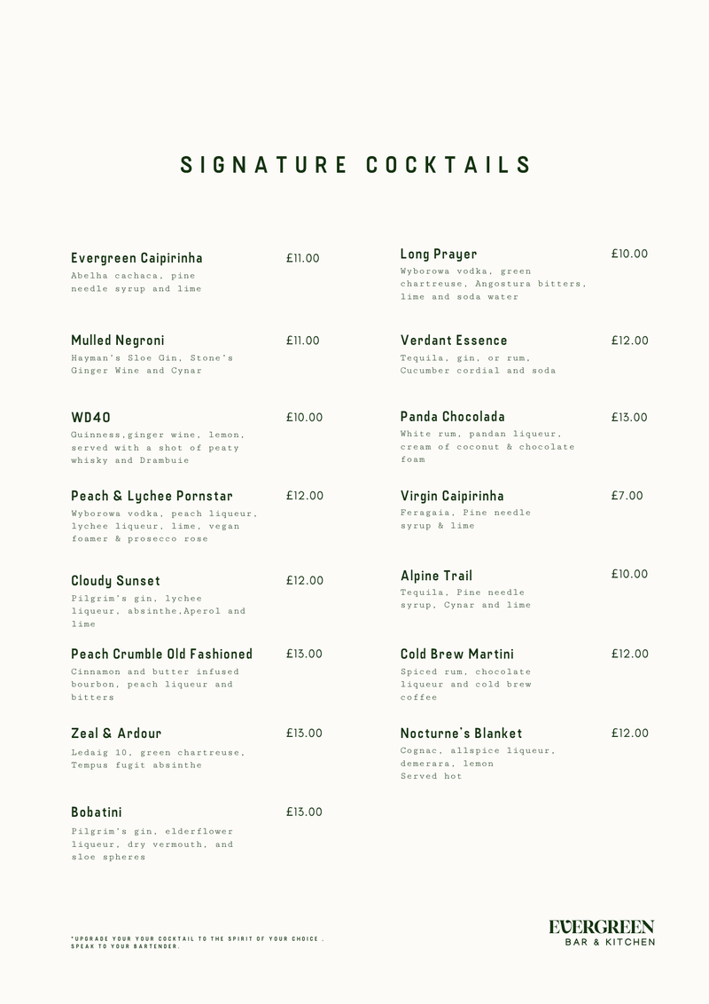 All served in a moody, design-led space filled with warm tones, dark emerald hues and soft subtle downlighting . Great music, good company, considered drinks — the Evergreen way.
